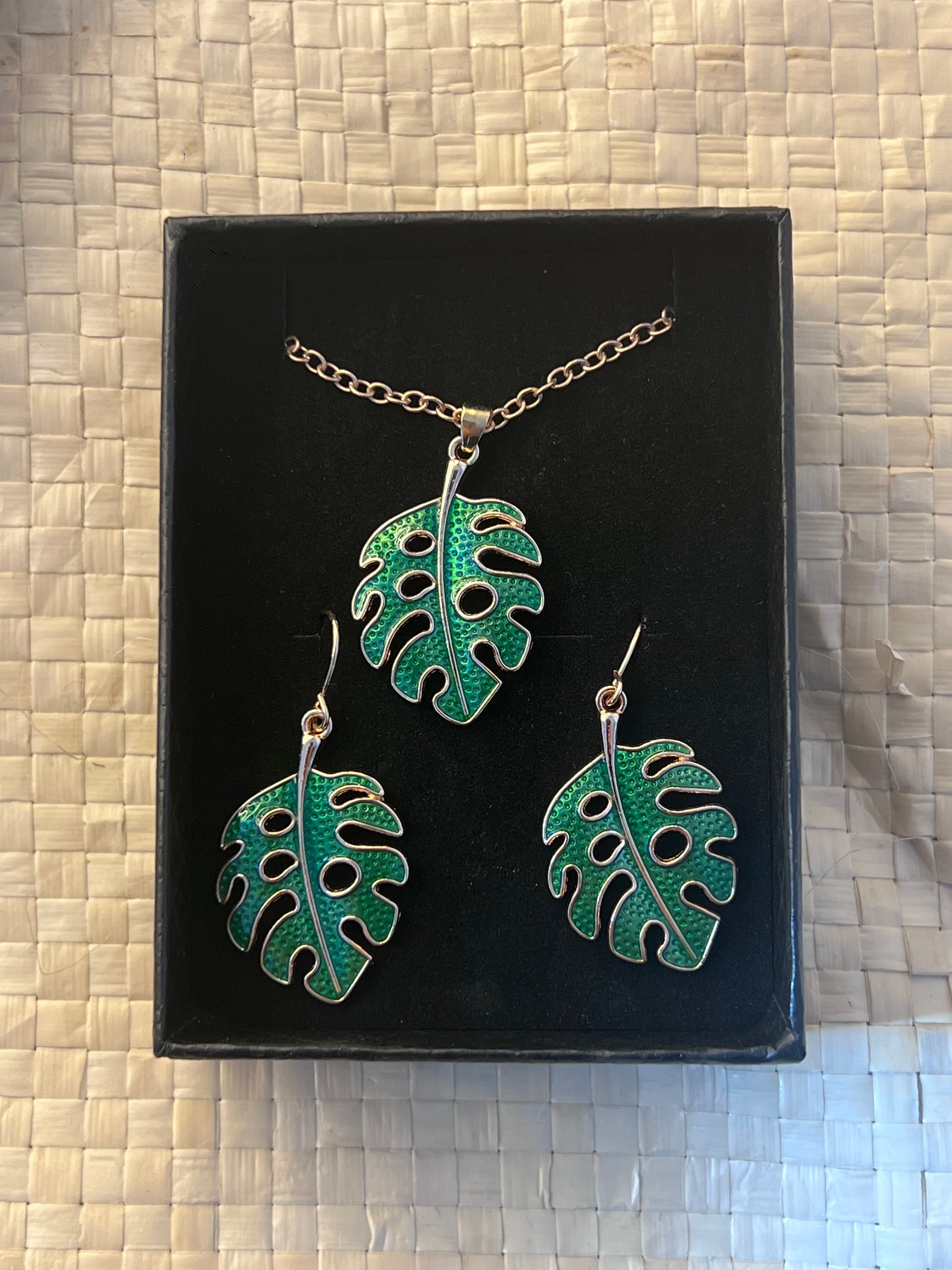 Beautiful gold plated monsterra set of earrings and necklace. Super versatile with what you can wear definitely brings a touch of summer in its unique form. Also another low stock item so be in quick!