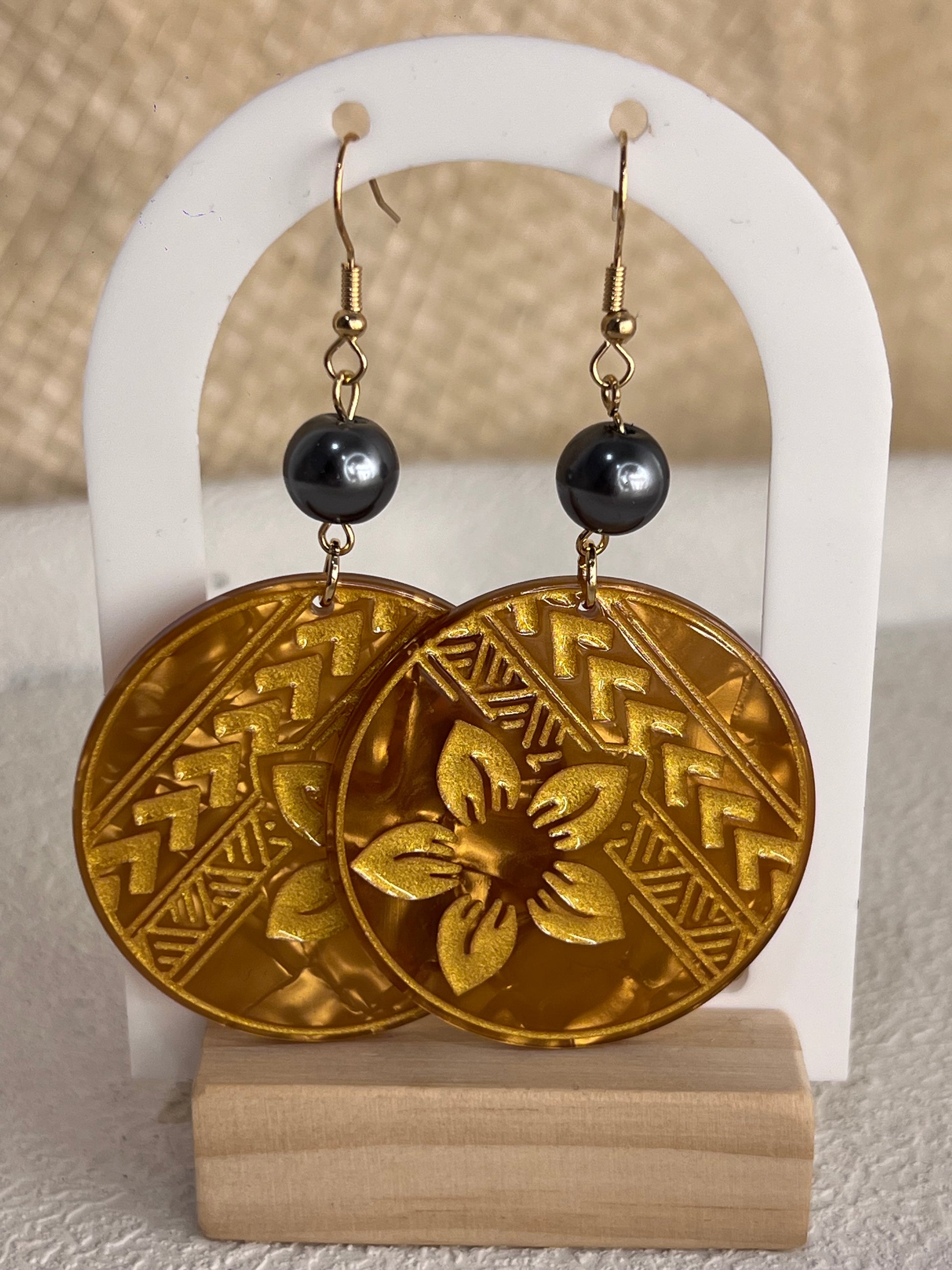 Kimy - Acrylic Tribal & Flower Drops are a stunning pair with its acrylic brown and yellow design they’re very light on the ears and easy on the eyes, which make them a crowd fave. We have only one in stock so be in quick!