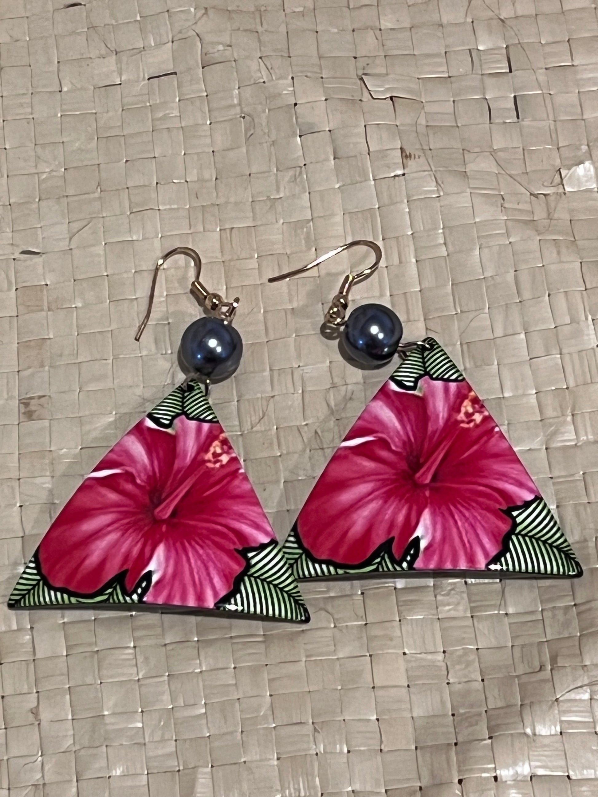Shirley is a funky lightweight fun and vibrant pair of the significant Aute (Hibiscus) flower of the pacific.